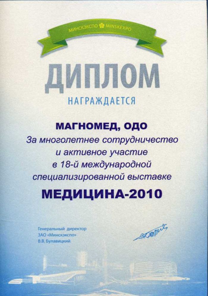 • Диплом выставки Медицина 2010