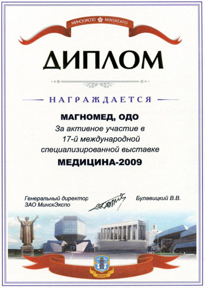 • Диплом выставки Медицина 2009