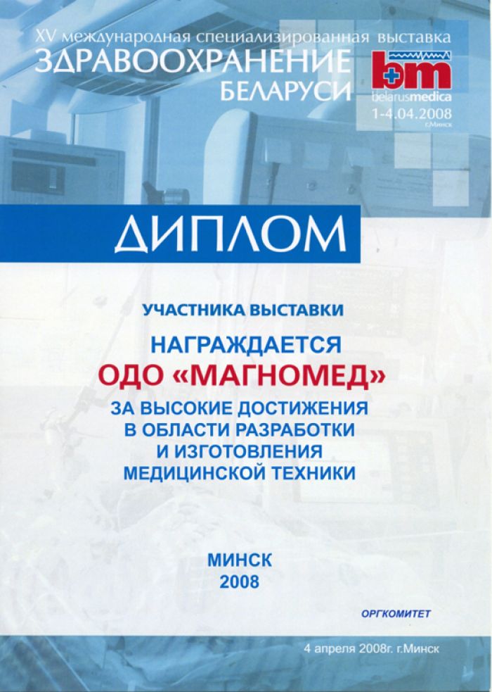 • Диплом выставки здравоохранение Республики Беларусь 2008