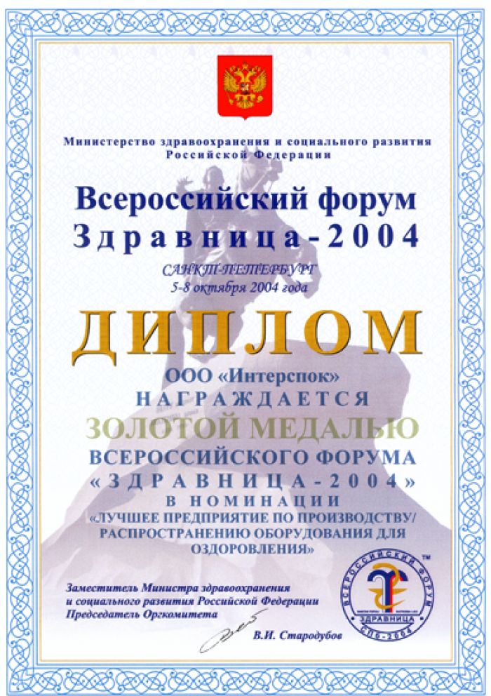 • Диплом: лучшее оборудование для оздоровления 2004