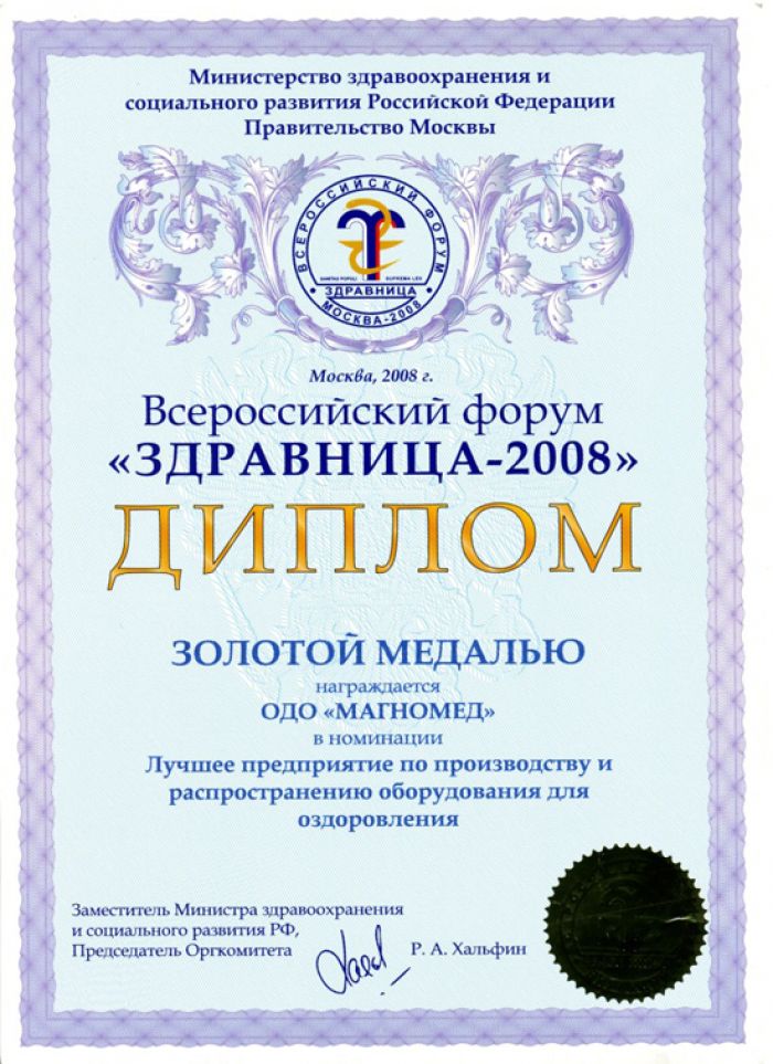 • Золотая медаль на выставке «Здравница 2008» в РФ