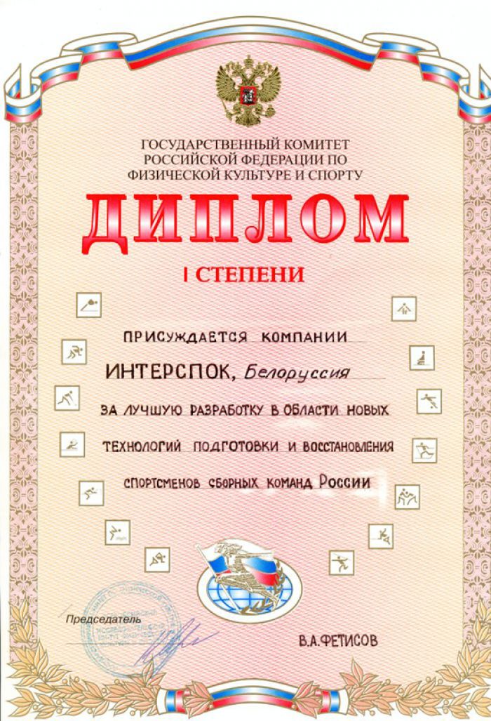 • Диплом государственного комитета РФ по физической культуре и спорту