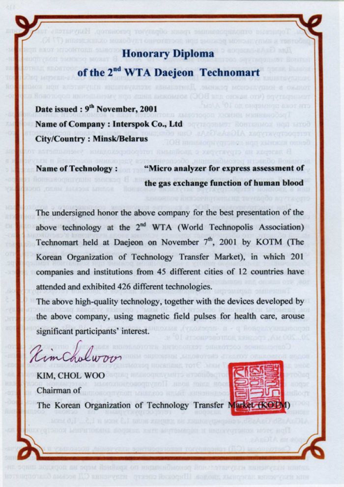 • Диплом: Корея 2001 год